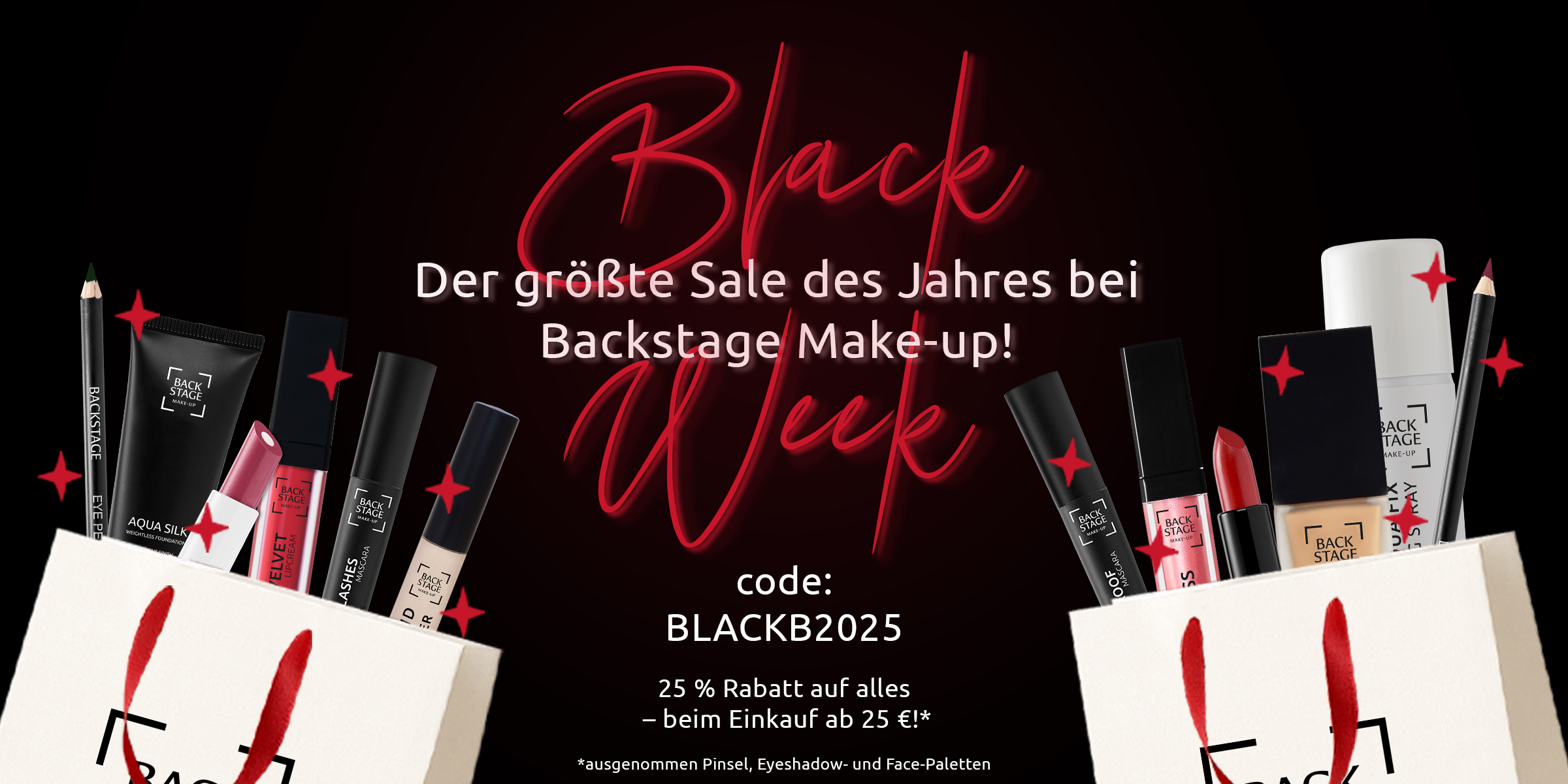 Backstage Make Up steht seit 2003 für echtes Profi Make Up, das hält, was es verspricht. Ob für Make Up Artists, Visagist:innen oder Beauty-Fans – bei uns findest du hochwertiges Make Up mit intensiver Pigmentierung, langer Haltbarkeit und perfekter Performance. Über 90 % unserer Make Up Produkte werden in Europa gefertigt – unter fairen Bedingungen und mit strengen Qualitätskontrollen. Für deinen Studioeinsatz, Bühnenshows oder den Alltag bieten wir dir Profi Make Up, das funktioniert und begeistert.